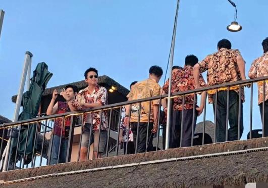 路透图里,他们穿着花衬衫,一下就有了夏天的感觉。陈小春的出现真是个小惊喜,我本来听说他在上海录年会特辑呢,但因为某个顶流艺人的事儿给搁置了。这次他穿着鲜艳的红花衬衫,戴着黑帽,沙滩装都穿出了古惑仔的风采,工作人员都直呼“帅气炸裂”。